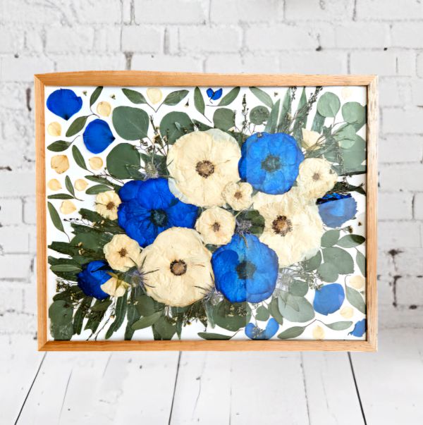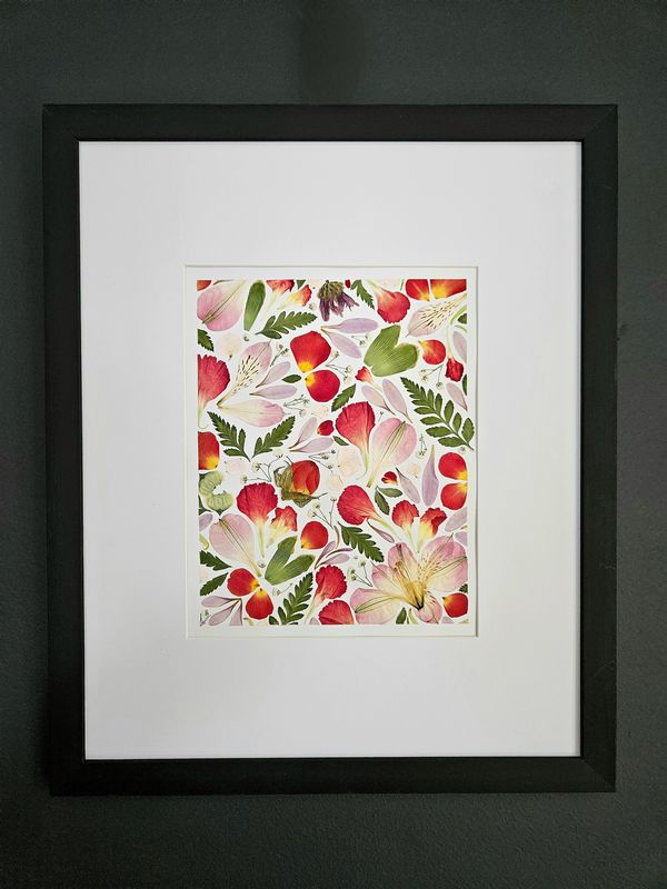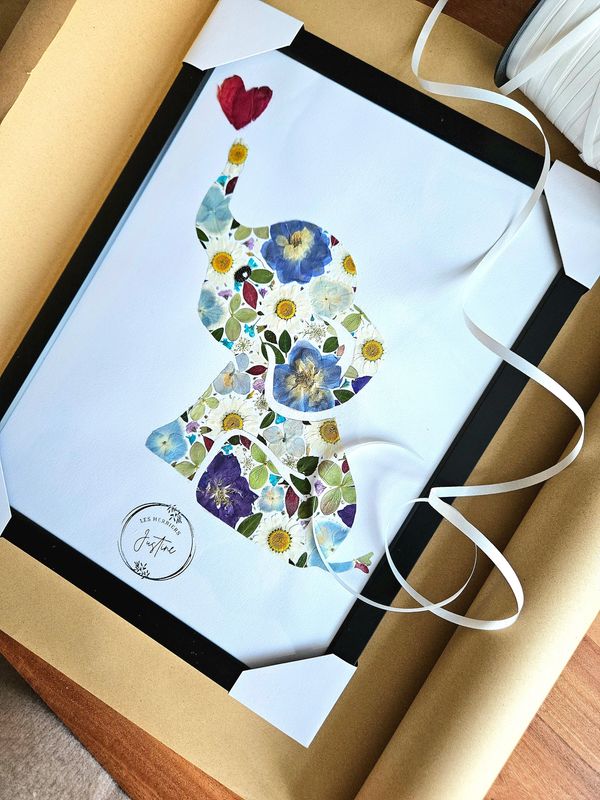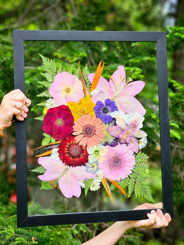 Ces précieuses fleurs deviennent ensuite mes pinceaux, avec lesquels je crée des œuvres uniques, personnalisables et éternelles en disposant les pétales, les fleurs ou les feuilles une à une sur une toile.